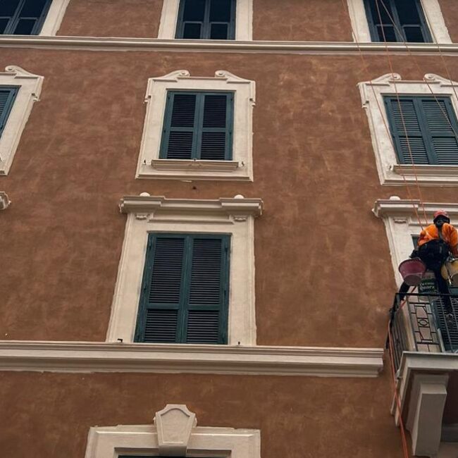 Specializzata nei lavori di ristrutturazione delle facciate esterne con l’utilizzo della tecnica della doppia fune di sicurezza.