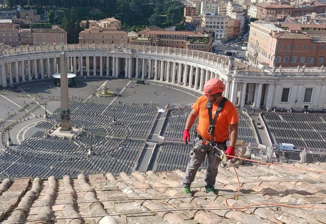 Level on, azienda specializzata in lavori su fune, è stata incaricata di eseguire il restauro del Vaticano. Ed è stata in grado di eseguire i lavori in modo rapido e sicuro, senz